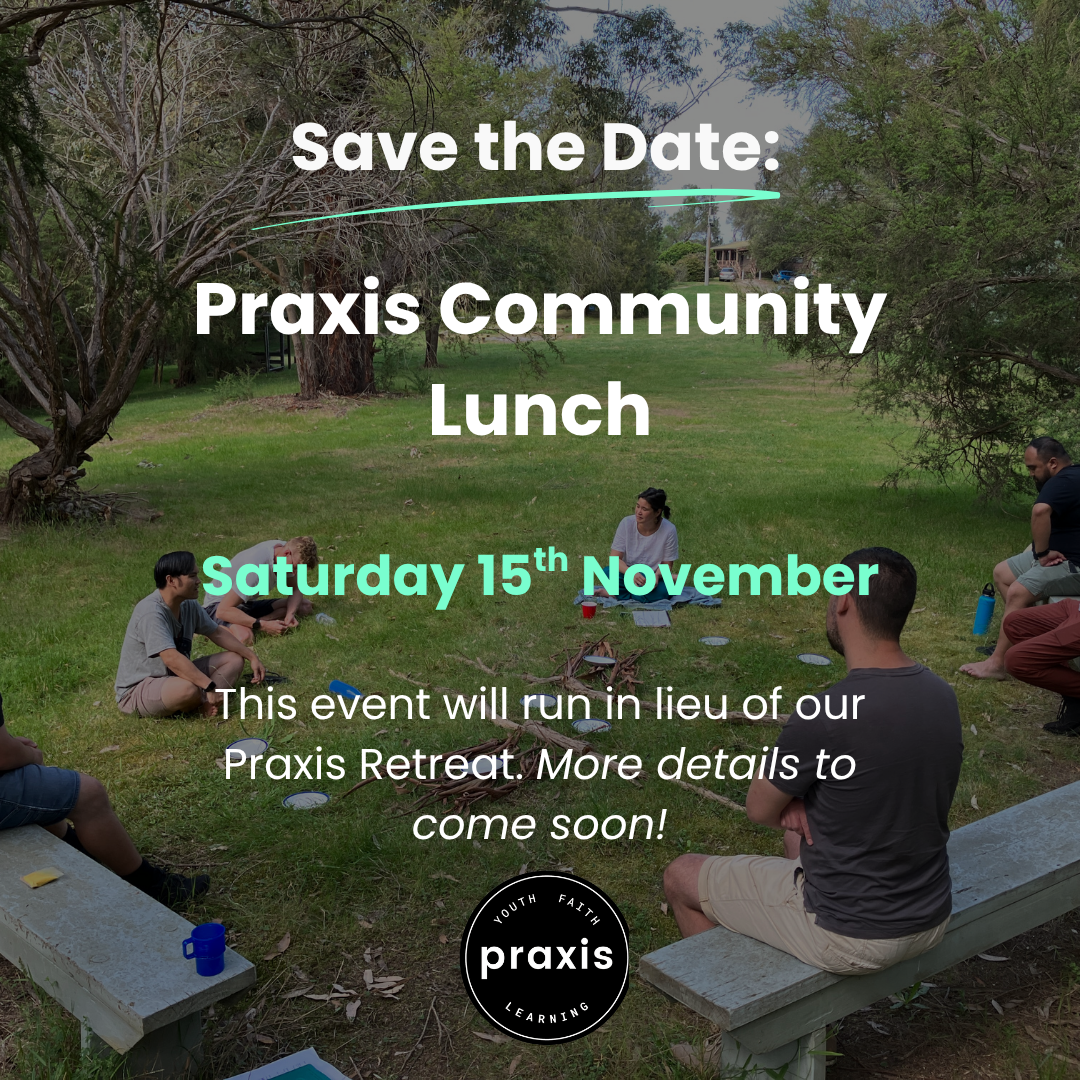 Join us as we gather for a time of connection, food and reflection on the last few years of Praxis events. This event is open to anyone who is interested in Praxis’ legacy - empowering passionate youth workers through faith, culture and community.